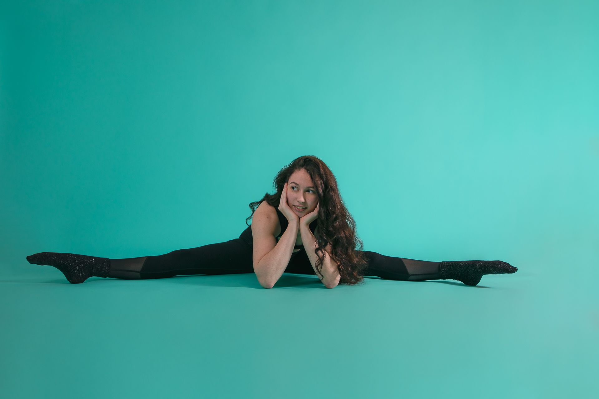 Beim Shooting ist fast alles erlaubt, solange es keine Verletzten gibt. Das bedeutet man darf die Hüfte im Split öffnen, wenn der Split dadurch tiefer oder die Beine mehr geöffnet sind, oder man darf jemanden bitten den eigenen Fuß zu reichen, wenn man ihn selbst sonst nur mit einem Band heran ziehen könnte. Manchmal fehlen einfach nur ein paar Millimeter für das perfekte Foto. Solange ihr wisst, dass ihr euch nicht verletzt und das es eine Ausnahmesituation ist und das Endziel im Unterricht immer der gerade Split, oder das Greifen des Fußes aus eigener Kraft ist, gilt beim Shooting: Fake it until you make it. ๐