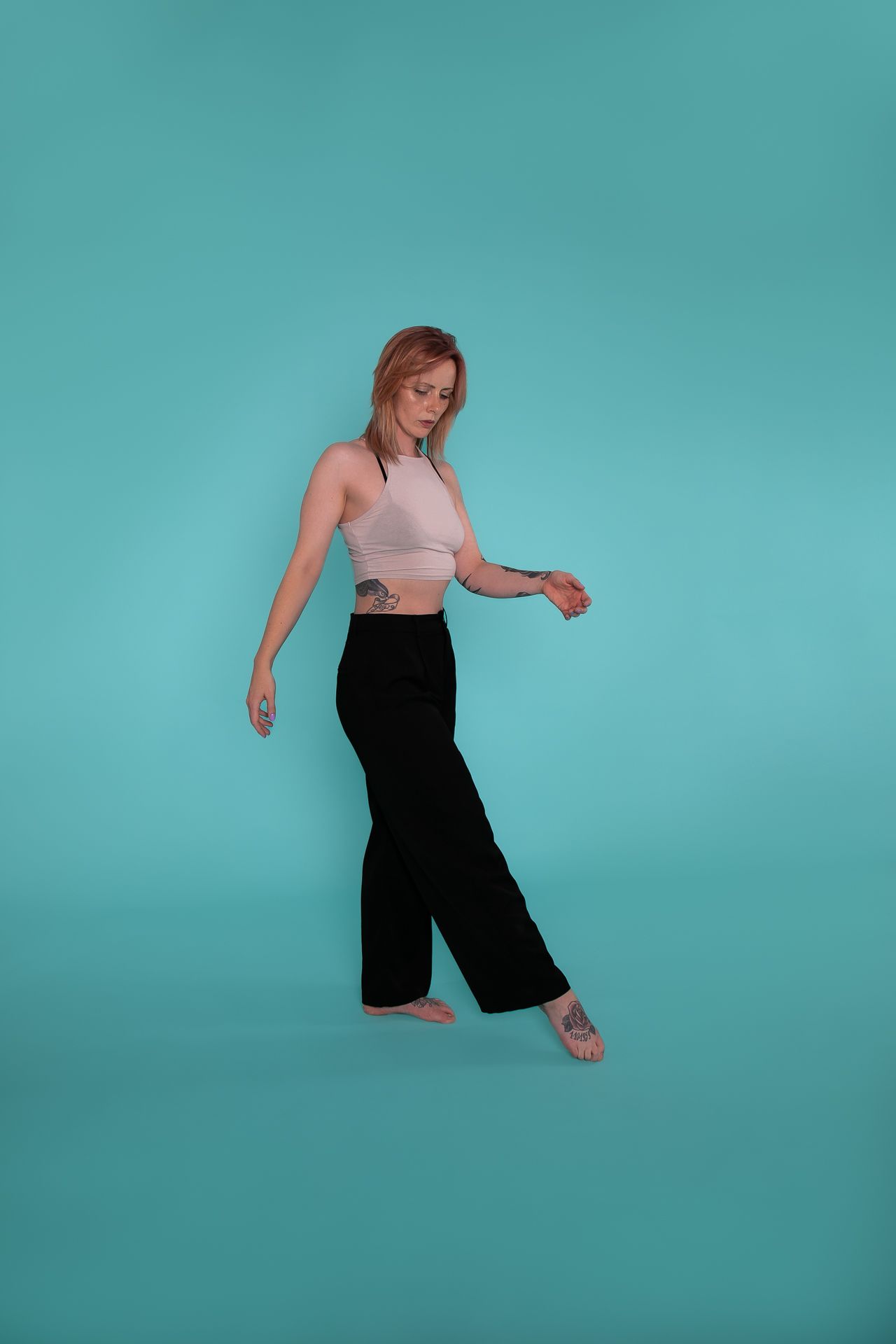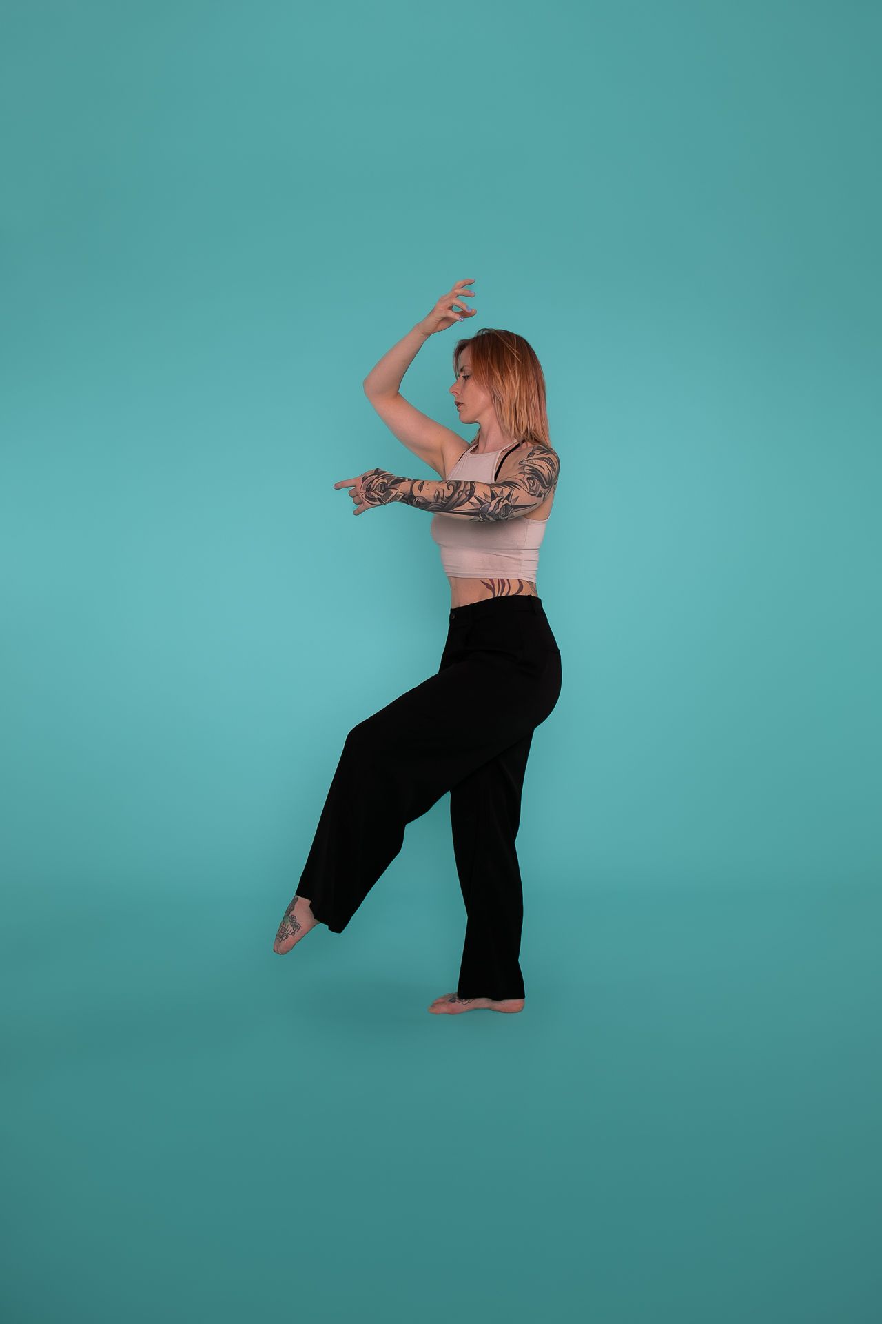 Negative Space bezeichnet den Bereich des Bilder, der nicht vom Subjekt eingenommen wird. Bei Posen, ob auf dem Boden oder an der Pole, schaue ich immer, wo der negative Space vergrößert werden kann. Hier in dem Video kreiere ich Platz zwischen den Beinen indem ich den Fuß nach hinten und die Hüfte nach oben ziehe. Das Dreieck im linken Arm (negative Space zwischen Arm und Torso) wird größer indem ich die Hand versetze und den Ellenbogen nach hinten ziehe. ๐